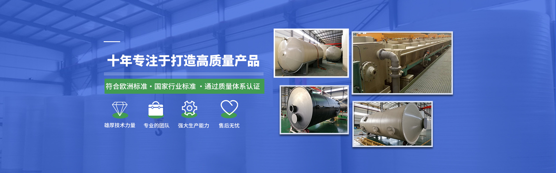 擁有工程師5名,員工100余名,歷經十年耕耘 擁有雄厚的技術基礎和豐富的生產經驗。 技術與實力,是品質的保證。質優的材料,完善的設備,高超的技術,打造九州可信賴的大型防腐設備。